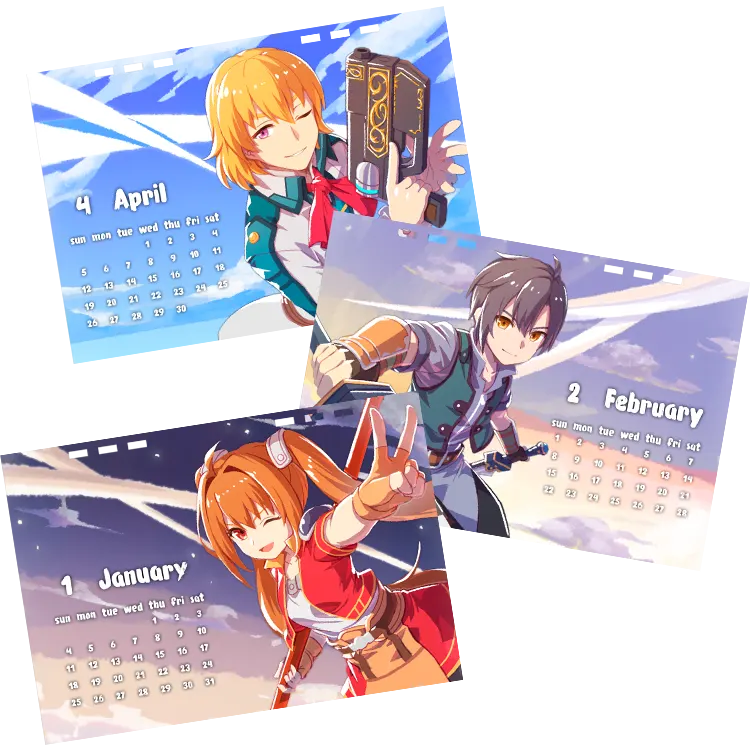 『空の軌跡 the 1st』の発売前にSNSで行ったカウントダウンイラストなどを収録した2026年のカレンダー。