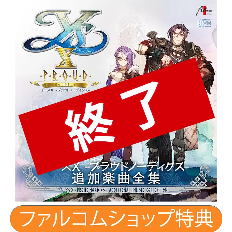 『イースX -Proud NORDICS-』で新たに追加されたフィールド、ダンジョン、イベント等の楽曲が収録! オリジナルデザインの音楽CDとして制作した、パッケージ版限定の特典となります。
